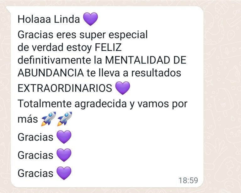 “Las sesiones con Linda han sido de gran ayuda para mi crecimiento personal, cada sesión es única, llena de mucho valor y excelentes herramientas para poner en práctica de inmediato y así seguir mi camino hacia mi gran meta”Nathaly R